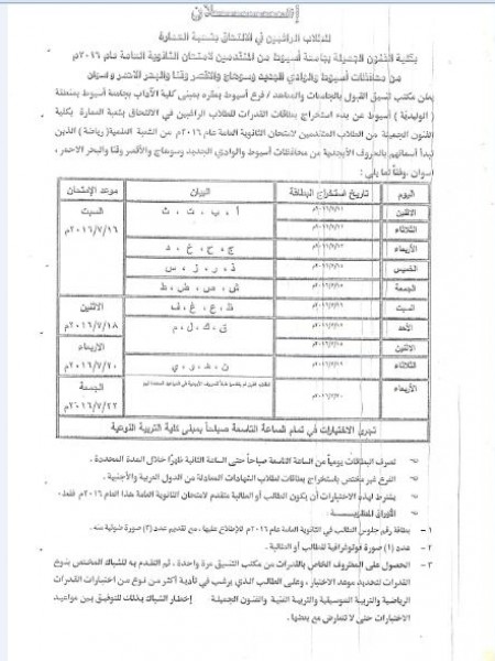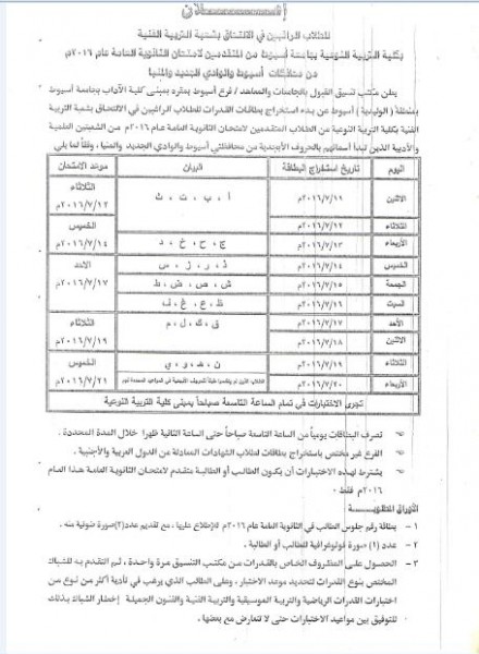 جامعة أسيوط تبدأ باستخراج بطاقات اختبارات القدرات لكليات التربية النوعية والفنون الجميلة والتربية الرياضية