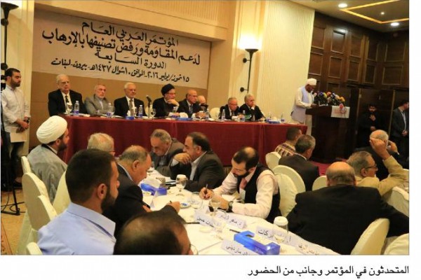 انهى المؤتمر العربي العام الذي انعقد في بيروت "دعما للمقاومة ورفض تصنيفها بالارهاب" بحضور ما يزيد عن 300 شخصية سياسية وحزبية وفكرية واكاديمية اعماله ببيان ختامي اكد على التمسك بالمقاومة وبحق الشعوب في مقاومة المحتل.. وشارك وفد قيادي من جبهة التحرير الفلسطينية ضم عضوي المكتب السياسي عباس الجمعه وصلاح اليوسف وأعضاء قيادة الجبهة ابو جهاد علي وأبو وائل كليب وهشام مصطفى في المؤتمر العربي العام لدعم المقاومة في بيروت .