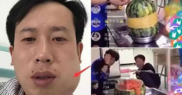 بالفيديو: بطيخة تنفجر بوجه صيني أثناء بث حي على الإنترنت