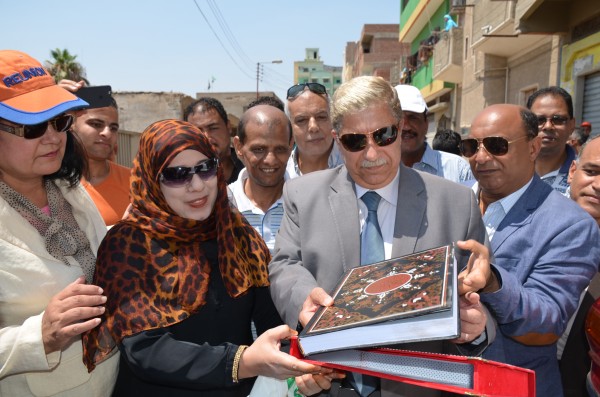 المصحف الشريف للمحافظ نيابة عن الاهالى تقديرا وشكرا للمحافظ على استجابته لتحقيق مطلبهم .