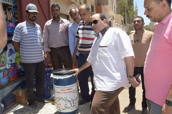 في اليوم الخامس لمبادرة حلوة يا بلدى نظافة وتشجير الشوارع بمركزى منفلوط والقوصية ووضع سلات قمامة امام المحلات