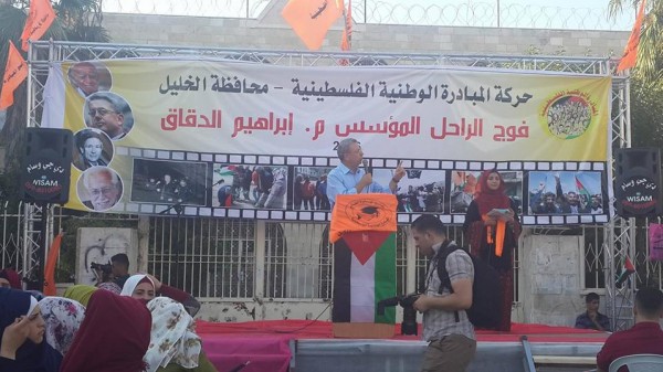 رحب القيادي في المبادرة الوطنية الأستاذ نعيم الداعور في كلمته باسم المبادرة في محافظة الخليل بالضيوف الكرام وبالطلبة الناجحين وذوي أهالي الشهداء وأهالي الطلبة ووفود حركة المبادرة وعلى رأسهم الأمين العام لحركة المبادرة الوطنية الفلسطينية الدكتور مصطفى البرغوثي .