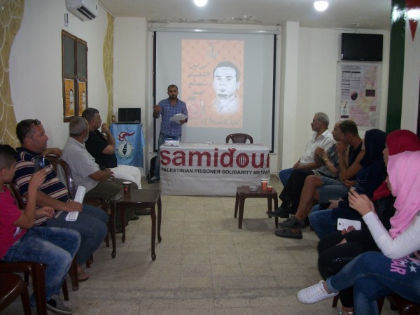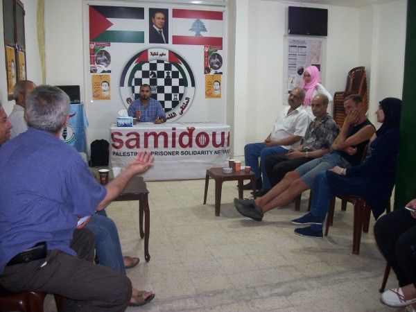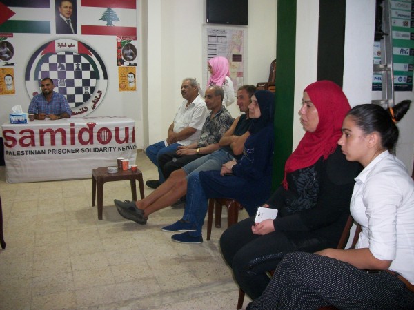 افتتح اللقاء بكلمة للأخ مصطفى عوض عن معاني ودلالات الإعتقال الإداري الذي يتبعه العدو الصهيوني بحق اسرانا الأبطال ثم حاضر عوض عن كيفية التضامن مع اسرانا في مخيمات لبنانوالشتات وفي مقدمتهم الأسير المناضل بلال كايد الذي دخل يومه ال 50 مضرباً عن الطعام احتجاجاً على القمع الصهيوني واجراءاته التعسفية بحق الأسرى .