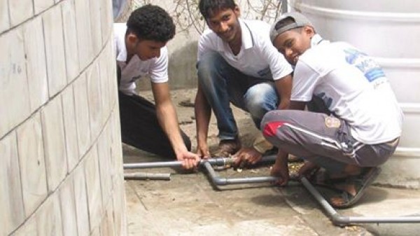 البرنامج الذي تم فيه مراعاة الجانب النظري وكذا التطبيقي حيث تم توزيع مادةتدريبية تم إعدادها خصيصا لهذا البرنامج وفي نهاية المرحلة التدريبية تم النزول لأولى مدارس الابتدائية في مديرية المعلا لإجراء أعمال السباكة فيها .