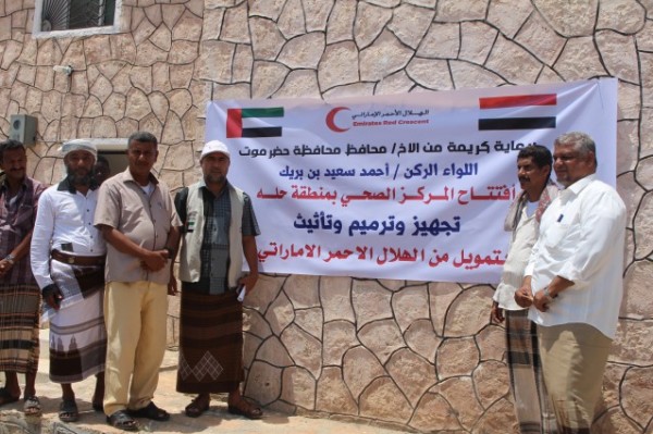وسط فرحة غامرة من الأهالي ، افتتح فريق الهلال الاحمر الاماراتي صباح اليوم مركزاً صحياً في منطقة حلة في مديرية المكلا بمحافظة حضرموت بعد استكمال المرحلة الاولى من اعمال الصيانة وتأثيثها بالتجهيزات والادوات الصحية من قبل الهيئة، بحضور مشرف مشاريع الهلال الاماراتي شوقي التميمي و مدير مكتب الصحة والسكان بمديريه المكلا محمد علي اليهري ومدير مركز حلة الصحي سليمان سعيد باحمران، وذلك في إطار المشاريع الصحية التي ينفذها الهلال في حضرموت لمساعدة شعبها على استعادة عافيته جراء الأحداث الاخيرة التي شهدتها المحافظة .
