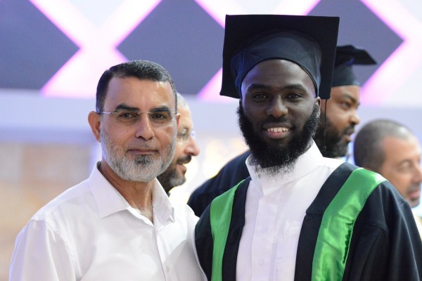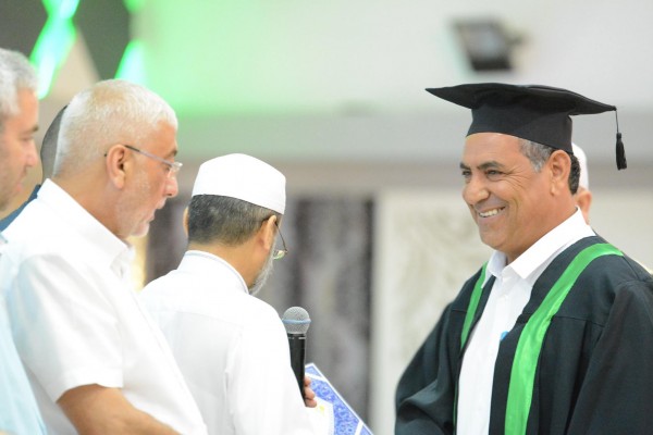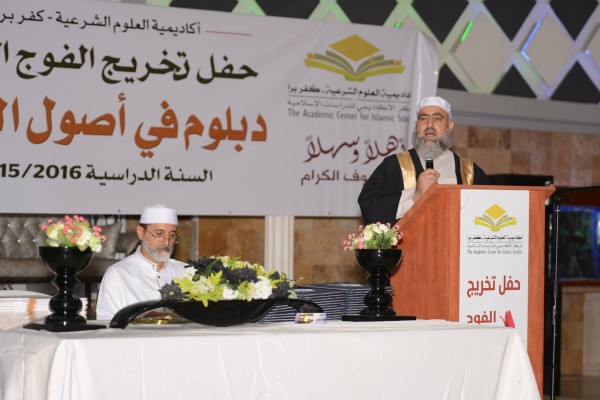 ثم تلتها كلمة ثمينة لرئيس محكمة الاستئناف والمحاضر في الأكاديمية فضيلة القاضي عبد الحكيم سمارة الذي تمحور حديثه حول أهمية العلم في إصلاح الأمم ممثلا ذلك بانتشار قضايا القتل المؤسفة في مجتمعنا التي لا تكون المعافاة منها إلا بتغلغل العلم في مجتمعنا. بعد ذلك تفضّل السيد أمير عاصي مسؤول القسم العربي في الكلية الاكاديمية أونو بكلمةٍ أبدى فيها رغبة بل واعتزاز كلية كريات أونو بتعاملها مع أكاديمية العلوم الشرعية في سبيل ترقّي أبناء الأقلية العربية إلى مستويات أكاديمية رفيعة، فختم كلمته بتقديم شهادة اعتراف رسمية من قبل كلية اونو بالأكاديمية الشرعية في كفربرا ، وهنا تقدم الشيخ رائد بتبيين ثمرة التعاون هذه، حيث أن عدد الطلبة الملتحقين بالمسار المشترك مع كلية أونو في ازدياد ملحوظ، فقد بلغ عدد الطلاب الملتحقين بمسار التعليم المشترك مع كلية اونو اكثر من 60 طالب وطالبة خلال العام الماضي. وبعد ذلك تحدث الشيخ صفوت فريج نائب رئيس الحركة الإسلامية في البلاد في كلمة موجزة عن هنأ فيها الخريجين والخريجات واشار الى المسؤولية العظمة الملقاة على عاتقهم ، أما الكلمة الأخيرة للضيوف كانت للشيخ محمود زكريا، أحد أهم الشخصيات في مركز الدعوة في مدينة اللد، الذي تحدث عن تجربته الشخصية مع طلاب ومحاضري الاكاديمية خلال الاسابيع الدعوية التي تنظمها الاكاديمية وعبر عن اعتزازه بهذا المشروع العظيم.