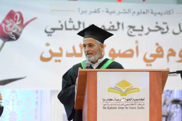 وكانت الكلمة الأولى للشيخ رائد عاصي رئيس مجلس ادارة الاكاديمية، الذي رحب بالحضور وهنأ الخريجين، وتحدث عن أهمية العلم لارتقاء الأمم، وأشاد بالتقدم الملحوظ التي تسير فيه الأكاديمية بفضل من الله، من حيث عدد الطلاب واتساع خارطة البلدان التي وصلت إليها الأكاديمية في البلاد، من أقصى شمالها إلى أقصى جنوبها، حيث أن الأكاديمية خصصت اياما تعليمية في كل من قرية بئر المكسور ومدينة الطيبة والرملة ويافا ورهط وتل السبع ، وأشاد بنجاحات عديدة في درب الأكاديمية لا سيما الحدث الهام وهو الاعتراف من قبل كلية كريات أونو. كما وقام بتوجيه كلماتٍ من الثناء لإدارة الأكاديمية ومحاضريها وداعميها جميعا.