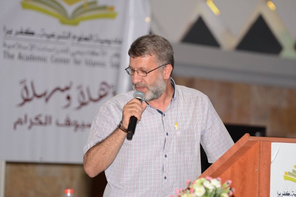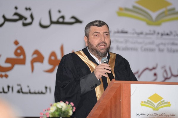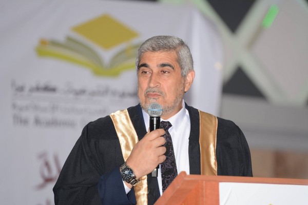 تلا ذلك ارتقاء الدكتور أيمن ريان مدير الأكاديمية إلى المنصة، مرحّبا بالضيوف ومباركا للخريجين ومُثمِّنا للجد الذي بذلوه خلال مسيرة العامين، وتحدث عن أهمية العلم في صلاح الأمم، وأهمية أخذ العلم بحذر بعيدا عن الغلو والتطرف الذي يبرأ الإسلام منهما. وأشار إلى أهمية دور الشباب، الذين يحملون طاقات عظيمة لإعادة بناء الأمة، وإلى دور الأكاديمية في توجيه وصقل شخصيات طلابها. وفي ختام كلمته توجه بالسؤال إلى الله أن يرعى هذا الصرح العلمي ويزيده تقدما وارتقاءً.