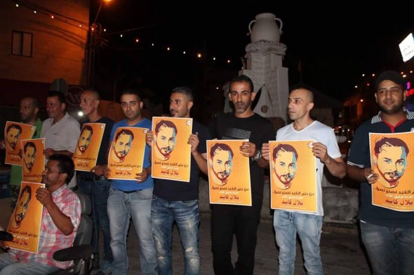نظم نشطاء شبابٌ، الليلة، وقفة تضامنية مع الأسير المضرب عن الطعام بلال الكايد وسط مدينة جنين ؛ مطالبين بإطلاق سراحه.