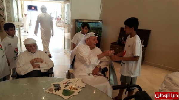 وقام المشاركون بالزيارة خلال تواجدهم مع الشوابإلى توزيع عدد من الهدايا المختلفة وباقات الورد والتي حملت معاني من التراحم والأبوةخلال تواجد المشاركين من طلبة ولاعبين مع الشواب وكأنهم آبائهم .