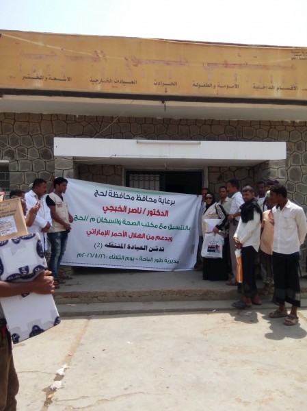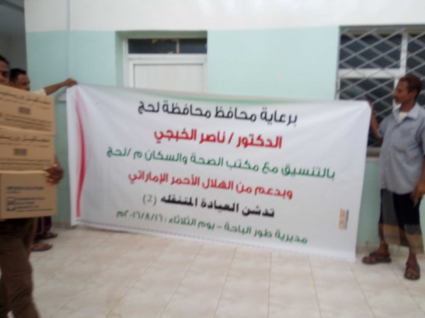 برعاية محافظ محافظة لحج الدكتور ناصر الخبجي أفتتح فريق الهلال الأحمر الإماراتي، ظهر اليوم الثلاثاء العيادة الطبية المتنقلة الثانية في محافظة لحج مديرية طور الباحة، بحضور منسقة مشاريع الهلال الأحمر الإماراتي الدكتورة إشراق السباعي ،ومدير مديرية طور الباحة علوان القطري ، ومدير مكتب الصحة في المديرية ،عبد العزيز الأصنج وبعض مسئولي السلطة المحلية في المديرية .