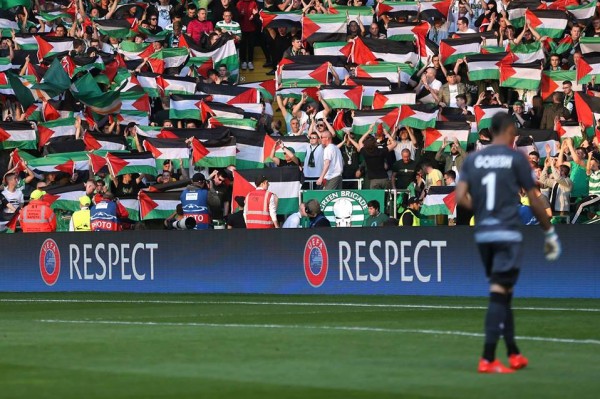 وأظهر فيديو نشره سلتيك عبر حسابه الخاص على موقع التواصل الاجتماعي "فيسبوك"، قيام مجموعة من الجماهير برفع العلم الفلسطيني فور وصول حافلة فريقهم إلى استاد "سلتيك بارك"، وأثناء نزول اللاعبين ودخولهم إلى الملعب الذي ستقام عليه المباراة.