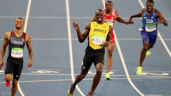 أصبح بولت أول عداء في التاريخ يحرز 3 ألقاب أولمبية متتالية في سباق 100م