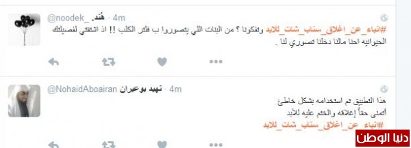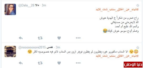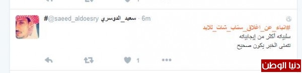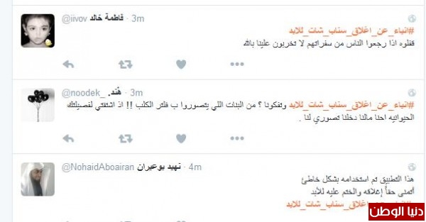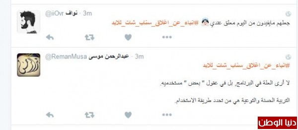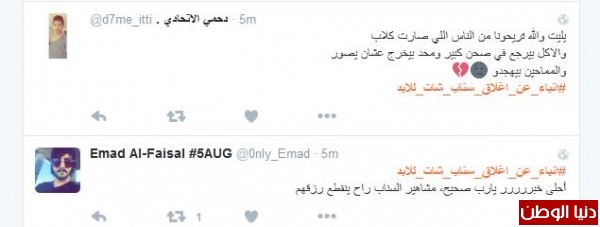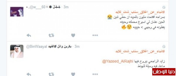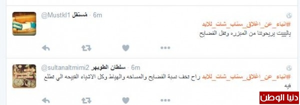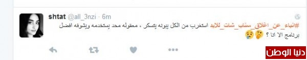 موسى الشمري قال:"انا مع الاغلاق يشغل كثير ليس هناك مرجع لصاحب الحساب مجرد فرقعة وتتلاشى وتذوب"، وغرّدت همس : " الا السناب مالقووو غيره يقفلوون لو يقفلون تويتر ازين بس السناب لانو فيه خصوصيه اكثر"