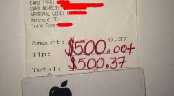 تلقى نادل إكرامية بقيمة 500 دولار أمريكي من إحدى زبائن المقهى الذي يعمل فيه وذلك عرفاناً له بجميل صنعه مع والدة الزبونة في اليوم السابق، بحسب ما ورد في موقع ميترو الإلكتروني.