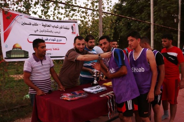 أطلقت منظمة فور شباب العالمية مكتب فلسطين دوري "شهداء فور شباب"لكرة القدم لأعضائها من مختلف محافظات قطاع غزة، وعقد الدوري على أرض الملعب الرياضي لمنتج الدولفين، حيث تم تقسيم المحافظات إلى أربع فرق رياضية على ثلاث جولات، في الجولة الأولى فاز منتخب غزة على نظيره فريق الوسطى بنتيجة (0:2)، وتأهيل منتخب خان يونس إلى النهائي بعد فوزه على منتخب الشمال في الجولة الثانية، واستطاع منتخب غزة الفوز على نظيره منتخب خان يونس بركلات جزاء أو ترجيحية بنتيجة هدفين مقابل هدف.