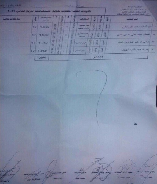 وقال الطلاب وعددهم (4) في مناشدتهم للمعنين في الوزارة : "بالرغم ان التأخير كان بسبب الوزارة الا انه لم يتم احتساب الربع الرابع لعام ٢٠١٥م وتم ابلاغنا بانه لا يمكن استعاضت هذا الربع رغم استحقاقنا له وانه سوف يتم تعزيز مستحقاتنا للربع الاول وبعد انتظار طويل وصلت اسمائنا الي السفارة ولكن كان هناك توجيهات بتوقيفها في السفارة إلي حين إرسال رساله تأكيديه من الجامعة بانتظام الطلاب بالدراسة والتي وللعلم تم ارسالها بداية شهر سبتمبر مباشرتا وسارعنا باستصدار رساله اخرى من الجامعة تعزز الرسالة الاولى والامل يحذونا باستلام مستحقاتنا لنتفاجأ بقول السفارة انه لا توجد مبالغ واستمر الاخذ والرد وقيل لنا ليس هناك داعي للقلق سوف نقوم بصرف مستحقات الربع الاول والثاني معاً".