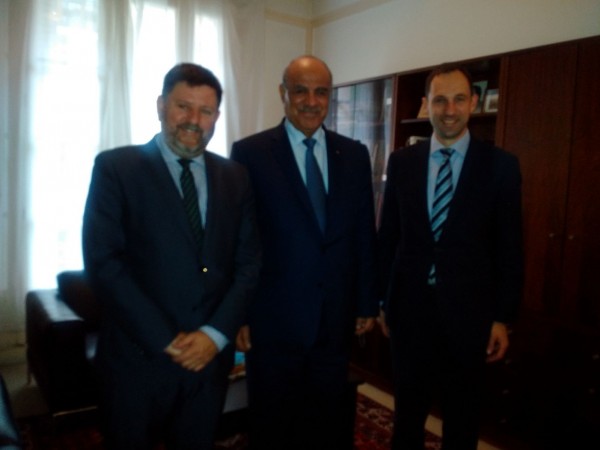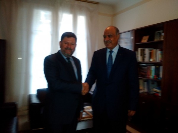 في مقر سفارة فلسطين في باريس، استقبل الأخ سلمان الهرفي سفير فلسطين لدى فرنسا السيد كارلوس كويري رئيس قسم الشرق الأوسط وشمال افريقيا في منظمة التعاون والتنمية الاقتصادية الدولية ومقرها الرئيسي في العاصمة باريس، يرافقه السيد رولف شوارتز من كبار موظفي القسم.
