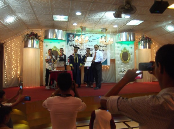 أختتم الحفل بتكريم الخريجين لرئيس القسم بدرع شكر وتقدير، وكذا شهادات لمجموعة من أساتذة القسم، بدورها قامت إدارة القسم بتقديم شهاداتتكريم للطلاب الخريجين، وعددهم 30، 27 طالب و3 طالبات، قدمها كلاً من رئيس القسم أ.د.عزان عبده قائد، ونائب عميد الكلية لشؤون الطلاب/عبدالرحمن عرفان، والأستاذ/محمد البيضاني، ورئيس اللجنة التنظيمية/معاذ أحمد.