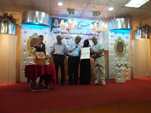 أقام قسم التربية البدنية بكلية التربية بجامعة عدن صباح اليوم في قاعة نادي شمسان الرياضي الثقافي حفل تكريمي لخريجي الدفعة العاشرة 2015–2016م، حضره عدد من أساتذة القسم وممثلي عن عمادة الجامعة وأهالي الطلاب والطالبات، ومهتمين بالشأن الرياضي.