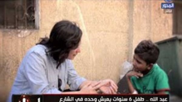 ظل عبد الله في الشارع إلي ان وجده أحد أفراد برنامج انتباه علي قناة المحور المصرية ، فسألوه عن عنوان والدته فأخبرهم به. وعلي الفور توجد فريق عمل البرنامج إلي محل إقامة الأم "مني" التي عندما رأت طفلها لم تجري عليه تعانقه وتقبله ، بل علي العكس بدت باردة غير مكترثة ولم يتحرك لها ساكنا. وعندما قالت لها مذيعة البرنامج هذا طفلك لم تنكر ، فقالت لها المذيعة لماذا تركتي طفلك في الشارع؟ فأجابتها بأنها لا تريده وأنها سلمته لأبيه في المركز، وأضافت أن زوجها الحالي لا يريده.