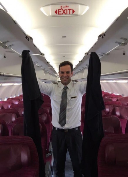 وأدت الصورة إلى إيقاف صاحبها عن العمل، بعد أن قام بنشر صورة له داخل الطائرة في إحدى رحلاتها إلى دولة أوروبية وهو ممسك بعباءتين في صورة حملت العديد من الدلالات.