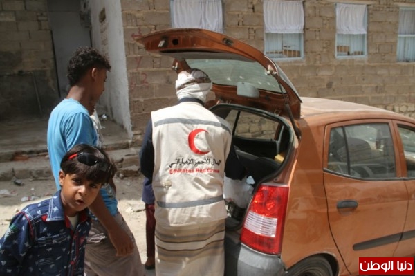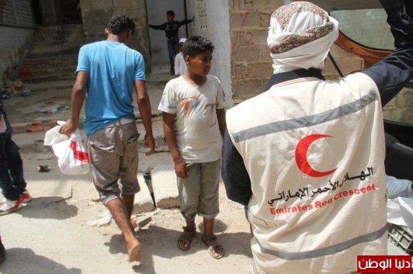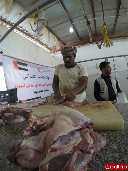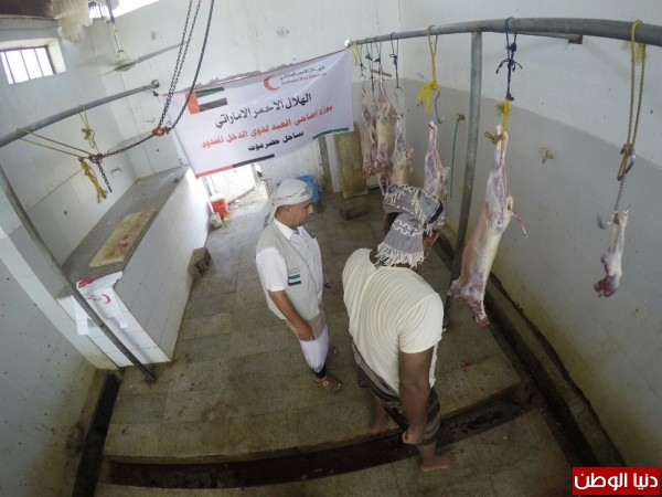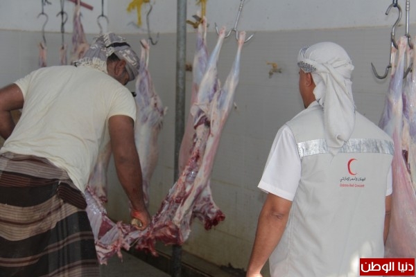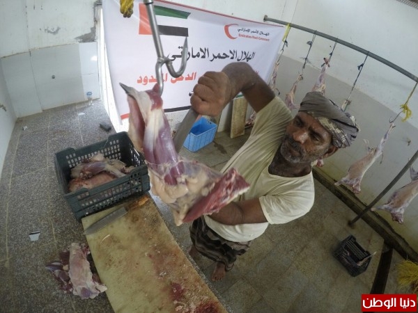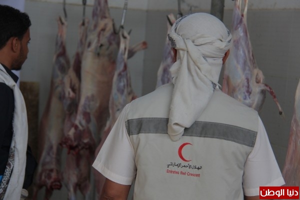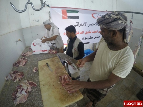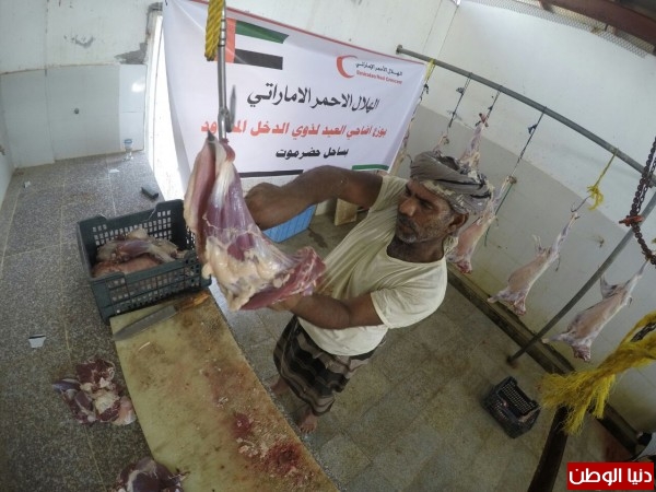 الهلال الأحمر الإماراتي يوزع أضاحي العيد بمناطق مدينة المكلا