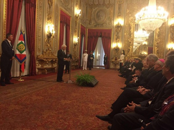 واستضاف رئيس الجمهورية الإيطالية فخامة السيد سيرجو ماتيرلا رؤساء الجامعات المشاركين، ودعا ا.د.دويك رئيس الجمهورية الايطالية لتغيير الوضع السياسي القائم ودعم إقامة الدولة الفلسطينية في هذا الجزء من العالم المضطرب.