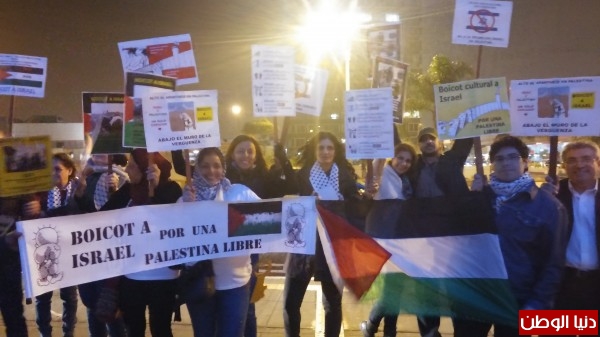 قامت مجموعة من لجنة التضامن البيروفية مع فلسطين و الفيدرالية الفلسطينية بتنظيم وقفة احتجاجية أمام المسرح الوطني في العاصمة البيروفية حيث كانت الفرقة السينفونية الاسرائيلية ( تحت اسم تل أبيب سوليس) تقدم عرض الموسيقى.