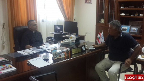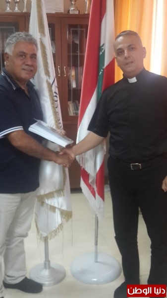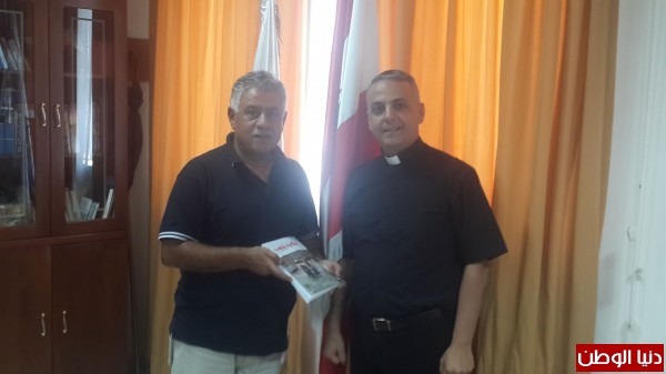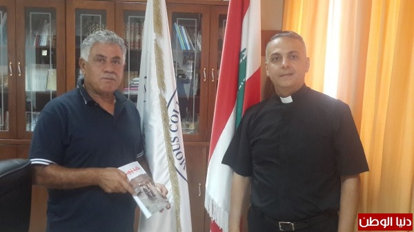 الأب جان يونس رئيس معهد قدموس يتسلم كتاب الاعلامي جهاد سقلاوي