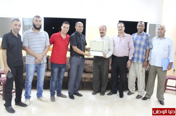 وقدم المجلس درعاً وشهادة تقدير للمستشار "أبو دف" تتويجاً لما قدمه ويقدمه لخدمة النادي والحركة الرياضية الفلسطينية.
