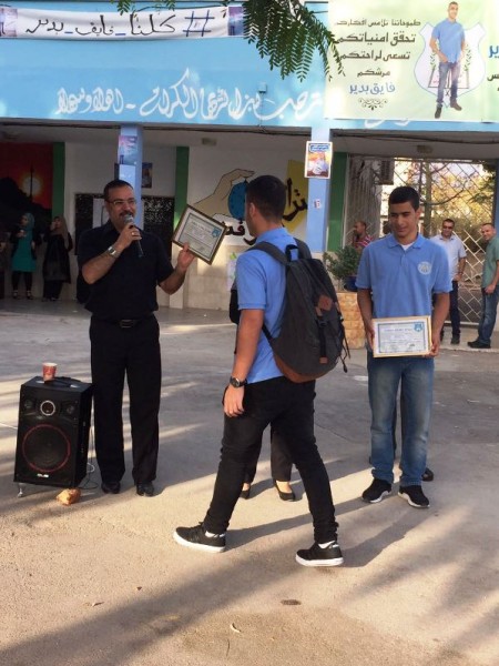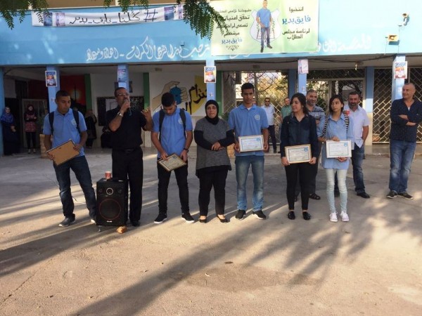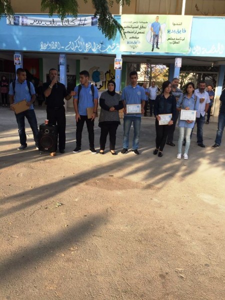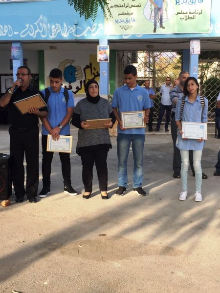 جاء هذا التكريم يعد قيام كل من الطلبة : توفيق سائد صرصور ، هيا نشأت صرصور ، محمد ماجد عامر ، همسة كامل بدير ، عمر لمعي عيسى بعد مشاركتهم في عرض مشروعهم المبني على العطاء امام اللجنة المرافقة للمدرسة والتي تشمل مفتشي الوزارة وقسم التربية في البلدية .