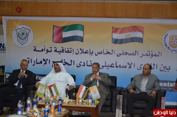 مراسم توقيع توأمة بين الإسماعيلي برئاسة المهندس إبراهيم عثمان والشيخ جاسم النقبي رئيس نادي الخليج الإماراتي وتم الاتفاق خلال توقيع الاتفاقية على تبادل الخبرات اللازمة من الجانبين عن طريق تبادل اللاعبين والمدربين واستضافة المعسكرات للفريقين .