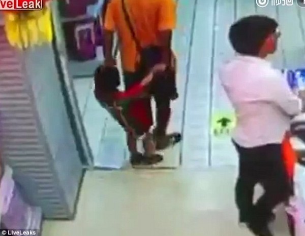 وفي المشهد الدامي، يبدو الأب، أثناء تسوقه في سوبرماركت بمدينة كوانزو جنوب الصين، وهو يلهو مع طفله الصغير، ويمسكه بكلتا يديه من وراء ظهره.