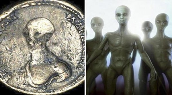 يعتقد الكثير ممن يؤمنون بوجود المخلوقات الفضائية بأن العثور على قطع نقدية قديمة تحمل صور مخلوقات أو مركبات فضائية في بلدة مصرية مؤخراً هو أفضل دليل على أن المخلوقات الفضائية قد زارت الأرض في غابر الأزمان.