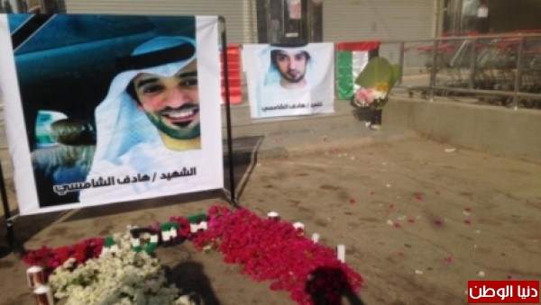 وأضاف ان المشاركين في الوقفة التي نظمتها حملتا "شكرا إمارات الخير" و"شكرا مملكة الحزم" رفعوا صورا للشهيد الشامسي ولشهداء الإمارات وكتبت عليها "بأي ذنب قتلوك" و"شهداء الإمارات قسما لن ننساكم" و"عدن تبكي شهداء التحالف" إضافة إلى صور قادة المملكة العربية السعودية ودولة الإمارات العربية المتحدة ودول التحالف العربي.