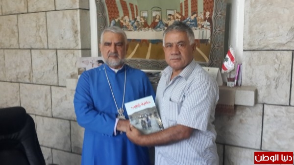 المطران ميخائيل أبرص يتسلم من الاعلامي جهاد سقلاوي كتابه حكاية شعب