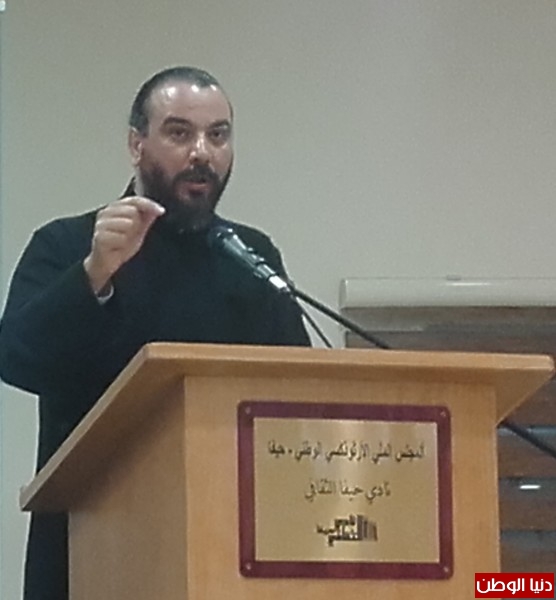 يسرّنا أن يشاركنا هذه الأمسية قدس الأرشمندريت أغابيوس أبو سعدة الغنيّ عن التعريف، الذي يُعَدُّ ليس من رجالات حيفا فقط، بل من رجالات شعبنا العربيّ، لِما يتمتّع به من علم ومعرفة ورحابة صدر والترفع عن التقوقع والانعزال والتطرّف، فكتاباته وأفكاره وتحليلاته السلميّة تُنشر على الملأ بدون رهبة وبدون محاباة، وتُمثّل رجل دين متنوّر واعٍ ومثقفٍ بامتياز، إنّه مثال لرجل الدين الذي يستحقّه شعبنا.