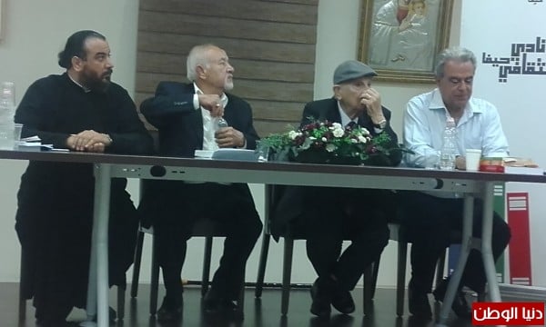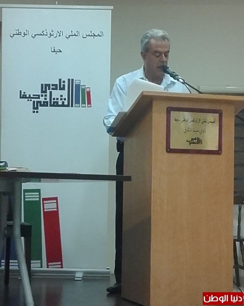 مداخلة الكاتب وليد الفاهوم: أوّلًا وقبل كلّ شيء، جئت لأسمع لا لكي أتكلّم، وكم يتوق الكاتب أن يسمع صدى ما يكتب. ثانيًا، جئتُ لكي أتعلّم، فيبقى الإنسان يتعلّم من المهد إلى اللحد، لكي أتعلّم من النقد الموضوعيّ العلميّ، من نقد الفكر لا نقد الشخص، كما جرت العادة لدى بعض المتمشيخين الجدد، فيتركون الفكرة لأنّهم عاجزون عن مجاراتها أو نقدها أو نقضها، ويتعربشون بشخص الكاتب وشخصيّته؛ طويل قصير، خِرّيج موسكو، عضو حزب، عميل روسيا والولايات المتحدة في الوقت ذاته.. هذا ما حدث لي فعلًا، وهكذا تمّت مهاجمتي قبل حوالي السنة في إحدى صحف الحركة الإسلاميّة عندنا في البلاد، مع أنّني خِرّيج الجامعة العبريّة في القدس، ولست عضوًا في الحزب الشيوعيّ، إنّما صديق إلى أبعد حدود الصداقة. هذه الأمسية عبارة عن حفل إشهار لكتابي، هذا الحفل الذي أعتزّ به، لأنّه هنا في هذا النادي الحيفاويّ الوطنيّ (بالمعنى الفلسطينيّ)، كان من المفروض أن يتواجد المتكلّمون الكرام؛ شيخٌ وكاهنٌ وأميرُ الجماعة الأحمديّة، لكن تغيّب الأوّل والأخير لظروف قاهرة، فنخاطبهم من خلال حضرة الغياب، ويعوّض تلك الخسارة هذا الحضورُ المتميِّزُ بأعلى درجات التميُّز. أشكركم جميعًا من شغاف القلب، وأخصُّ بالذكر "الأخ أبونا" أغابيوس، والمجلس الملّي الأورثوذكسيّ ورئيسه وأعضائه، كما وأخصُّ الزميل المحامي فؤاد نقارة "زمبرك نادي حيفا الثقافي"، والجنديّين المجهوليْن الزميل المحامي حسن عبادي وفضل الله مجدلاني .