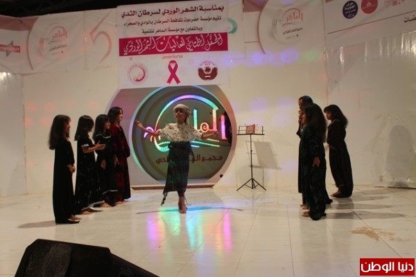هذا وقَدمت في الحفل زهرات مروج الفنية والقطاع النسوي باتحاد نساء اليمن ومدرسة ثبي لتعلم القرآن الكريم رقصات إنشاديه وشعرية استعراضية لدعم ومساندة مرضى السرطان .