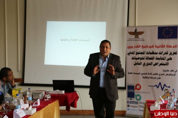 جاءت الورشة في سياق المرحلة الثانية من مراحل تنفيذ البؤنامج التدريبي ، وركزت على تمكين المشاركين من صياغة مقترحات وبدائل سياسات عامة للمساهمة في تبني ممارسات وإجراءات جديدة متوافقة مع توصيات الاستعراض الدوري الشامل 2014, فضلا عن تمكين المنظمات من المشاركة في عملية إعداد التقارير والإفادات وتقديمها لآلية الاستعراض الدوري الشامل .