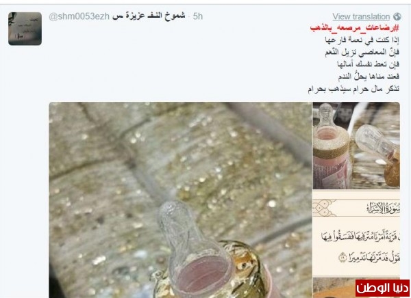 ووضح د.حسن الجوجو رئيس مجلس القضاء الأعلى بغزة أن تداول هذه "الرضاعات المرصعة بالذهب "محرمة من وجهين.
