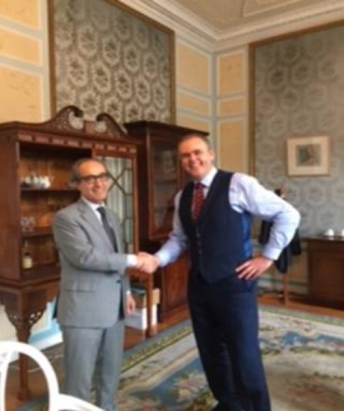 التقى صباح اليوم في مقر وزارة الخارجية الإيرلندية سفير دولة فلسطين لدى ايرلندا احمد عبد الرازق مع وزير الدولة لشؤون المغتربين والتنمية الخارجية (Diaspora and Overseas Development) جو ماكهيو (Joe McHugh).