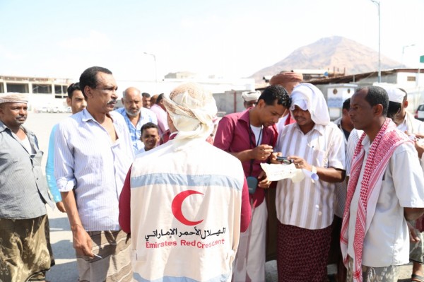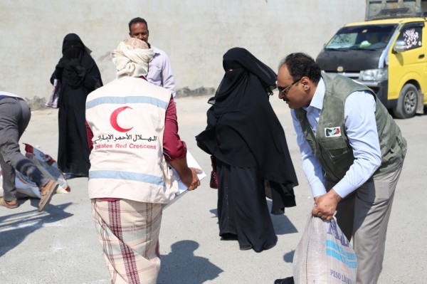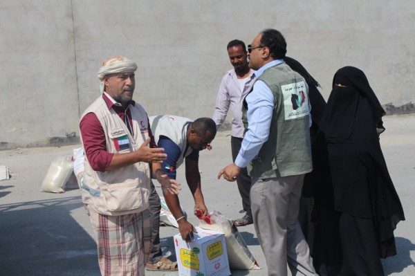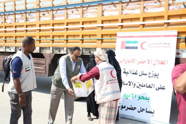 وزعت هيئة الهلال الأحمر الاماراتي صباح اليوم مساعدات غذائية على مجموعة من العاملين والاساتذة في محو الأمية بمديرية المكلا اللذين يعيشون وضعاً اقتصاديا صعب بسبب الظروف الاخيرة التي شهدتها البلاد.