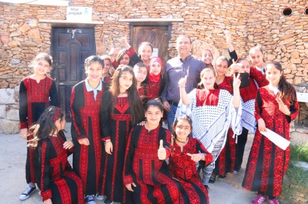 وقد غنى طلاب المدارس الأغنية الأشهر فلسطينياً، التي تخص موسم الزيتون :على دلعونة وعلى دلعونة... زيتون بلادي أجمل ما يكونا...زيتون بلادي واللوز الأخضر والميرامية ولا تنسى الزعتــر...وقراص العجــة لمـا تتحمـــر ما أطيب طعمها بزيت الزيتونا...خبز ملتوت وجبنة طرية أكلة تدفينا بالشتوية ...وصحون السحلب والهيطلية خلتنا ننسـى بردك كانونا...يا ربي تشتي ونلبس طاقيـــة ونلبس كبود ونحمل شمسية....ونغني سوى يا فلسطينية دايم في بلادي خبز الطابونا".
