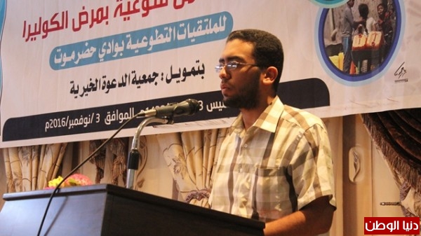 مضيفاً أن مكتب الشئون الاجتماعية أولى اهتماماً خاصا بالمجموعات التطوعية التي بلغت خلال المسح الميداني أكثر من 200 مجموعة وملتقى مصرح رسمياً من قبل المكتب لمزاولة العمل والانشطة التطوعية المختلفة ، وأشار باجهام خلال كلمته بجهود وزارة الصحة العامة والسكان بالوادي لوضعها خطط نوعية واحترازية للوقاية من مرض الكوليرا والحد من انتشاره ، مبيناً أنهم في هذا العام لديهم في مكتب الشئون الاجتماعية خطة معدة لمساندة للفرق التطوعية حتى تبرز أعملها بصورة تكاملية لتحقيق مفهوم التطوع والعمل التطوعي ليكون للمتطوع اثر وبصمة في المجتمع .