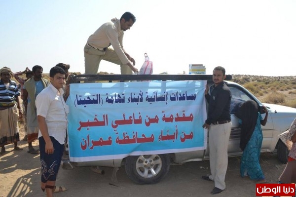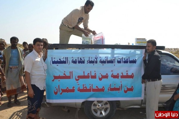 أبناء محافظة عمران يقدمون قافلة إغاثية لقرى التحيتا بالحديدة