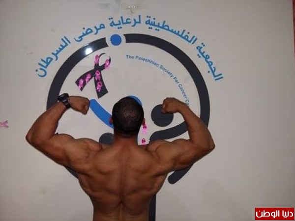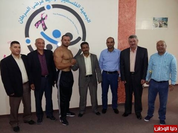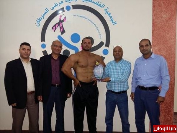 كما ثمن الدكتور النائب احمد ابوهولي _ رئيس الجمعية الفلسطينية لرعاية مرضي السرطان _ جهود لاعب كمال الأجسام البطل أيمن وشاح و علي إحساسه الرائع في مرضي السرطان .