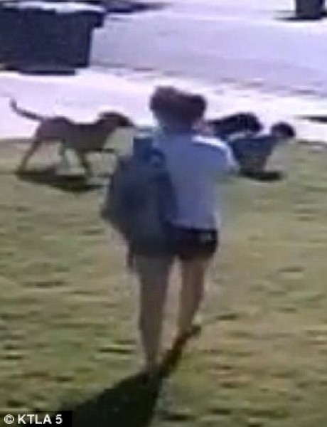 وراحت الأم تصرخ وتستغيث طلباً للنجدة، ولحسن حظها سمعتها إحدى الجارات، وهبّت لنجدتها، واستخدمت عصا لإبعاد الكلبين، مما سمح للمرأة وطفلها بالدخول إلى المنزل والاتصال بالشرطة والإسعاف.