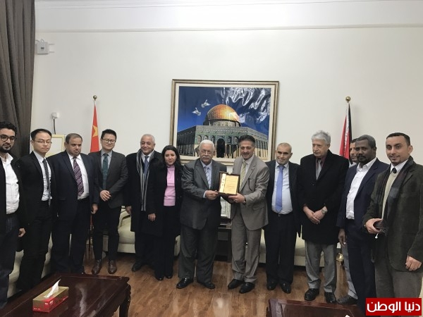 وفد عربي وصيني يزور السفارة الفلسطينية في بكين لتهنئتهم بذكرى اعلان الاستقلال
